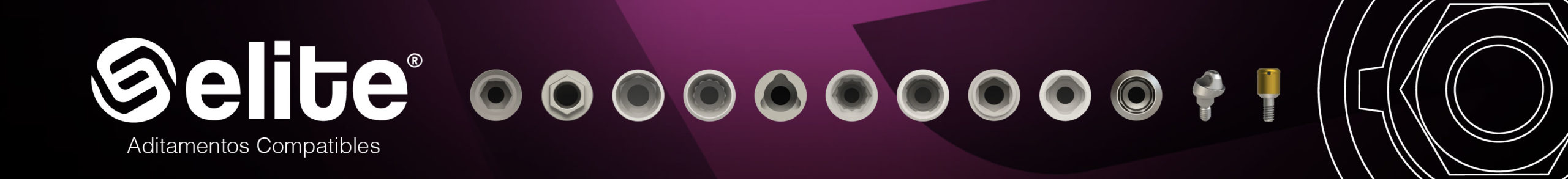 Una solución competitiva a las conexiones más usadas en el sector: Hexágono Interno, Hexágono externo Universal, Cónica active, Hexágono Interno Cono Morse, Trilobular, Click, Conical BL, Conexión internal Hex S&M, BTI y Octógono Interno.